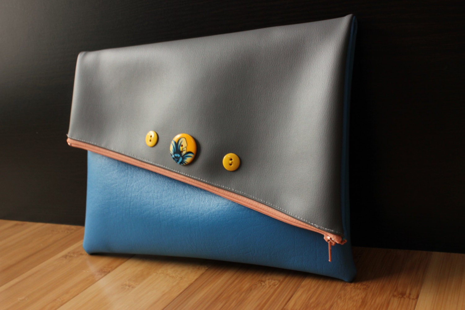 | Sea Blue & Grey Two-Toned Clutch by The Wayward Stitch |